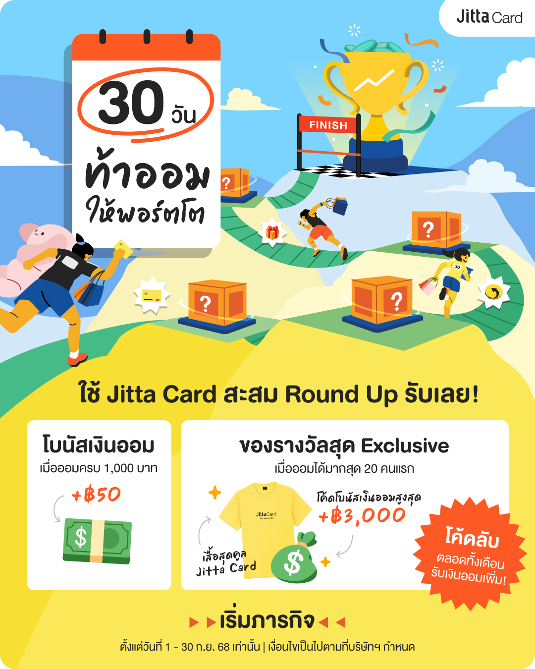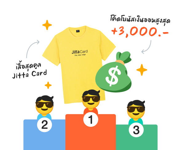 🥇อันดับที่ 1 รับโค้ดโบนัสเงินออม 3,000 บาท และเสื้อ Jitta Card