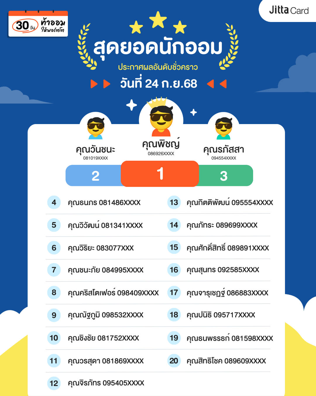 – อันดับ 4–20 รับเสื้อ Jitta Card